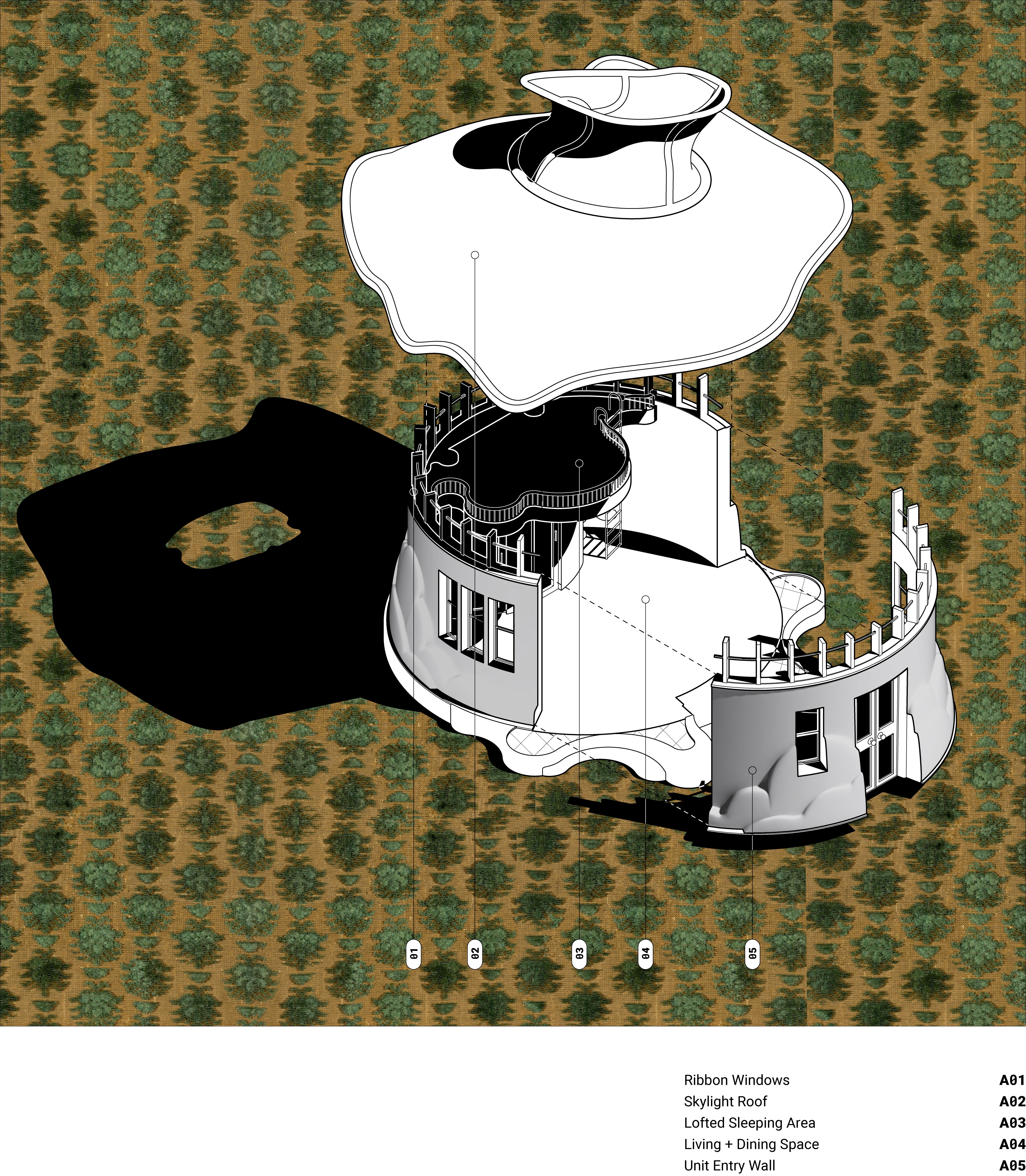 This project looks to reclaim that lost momentum by re-imagining Paradise as a small community. It proposes a return to growth through farming, tapping into the contemporary revival of homesteading and self-sufficiency. The homes are modest in scale, designed as small dwellings set within large, workable plots of land. While forward-looking in its social and agricultural ambitions, the project remains rooted in the town’s railroad history. Form, materiality, and function quietly echo the infrastructure that once defined Paradise.