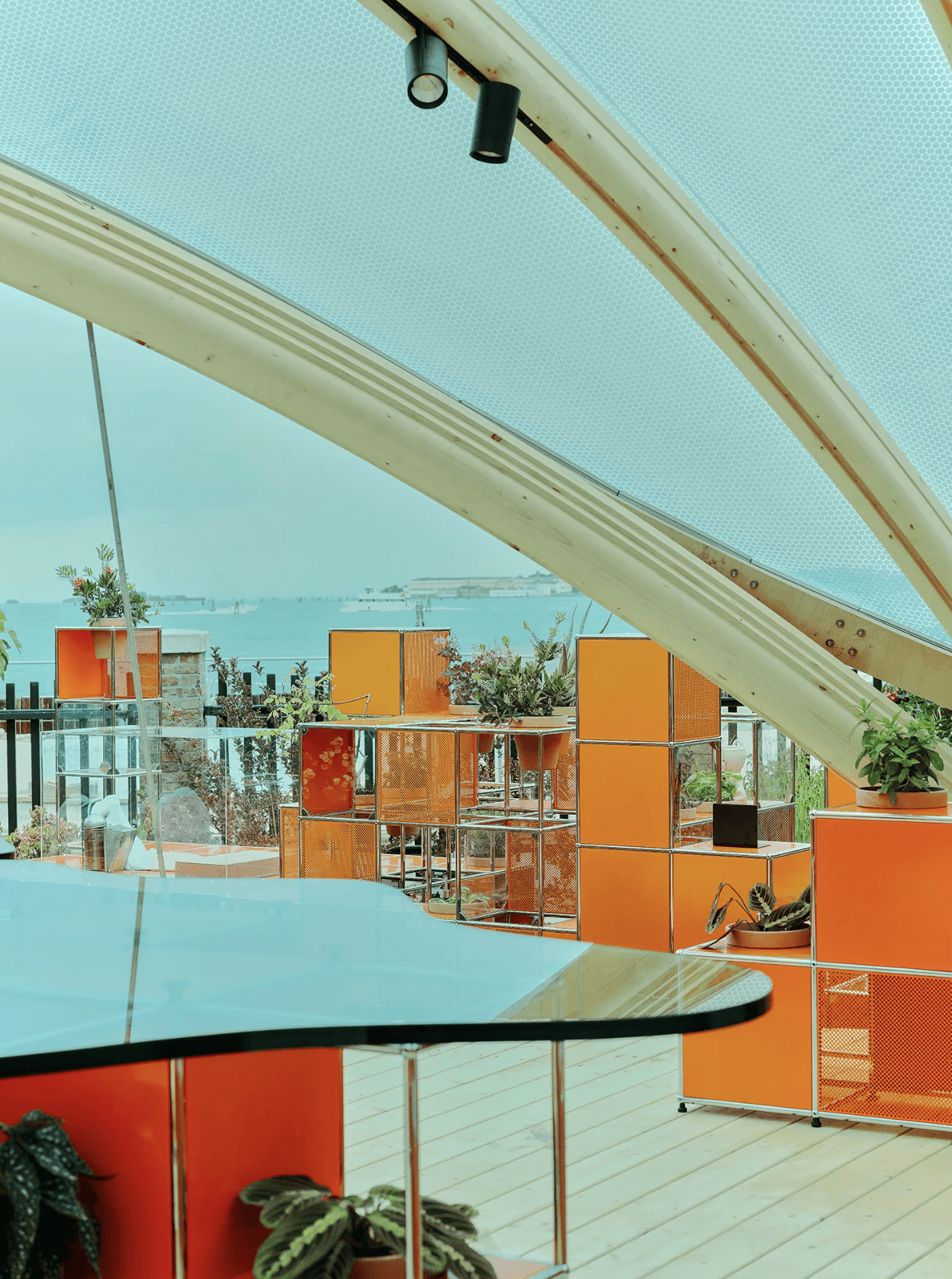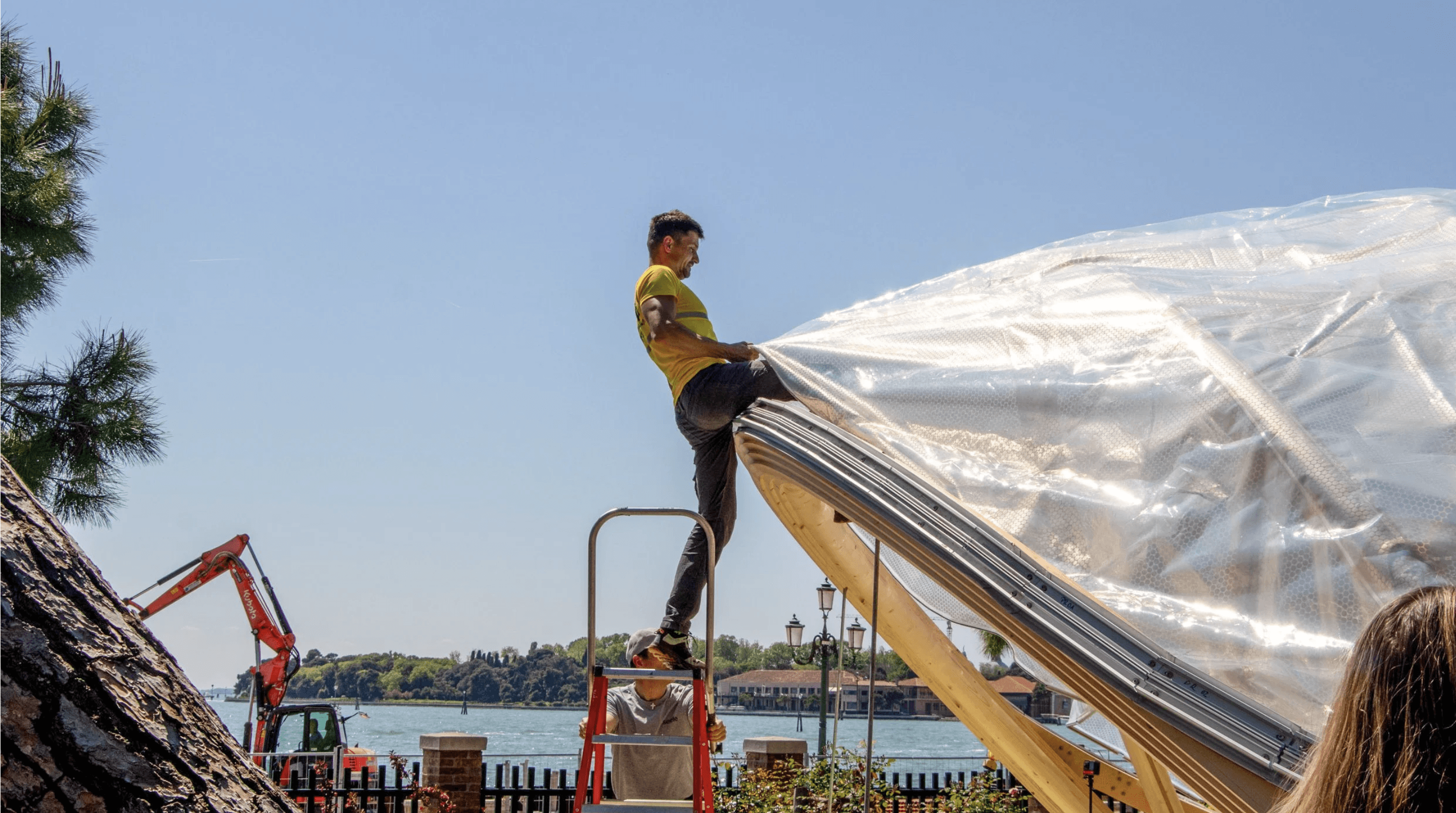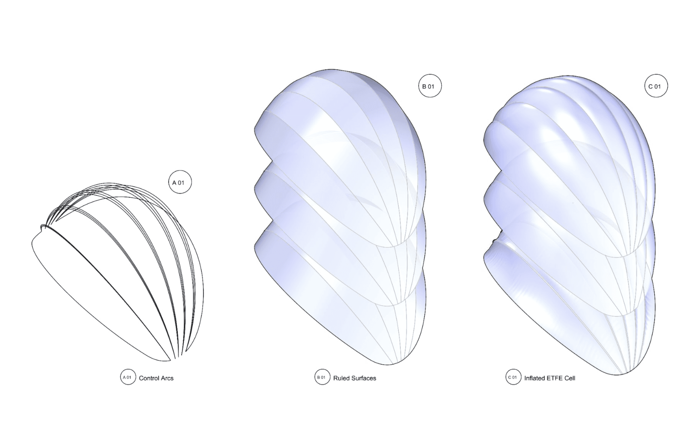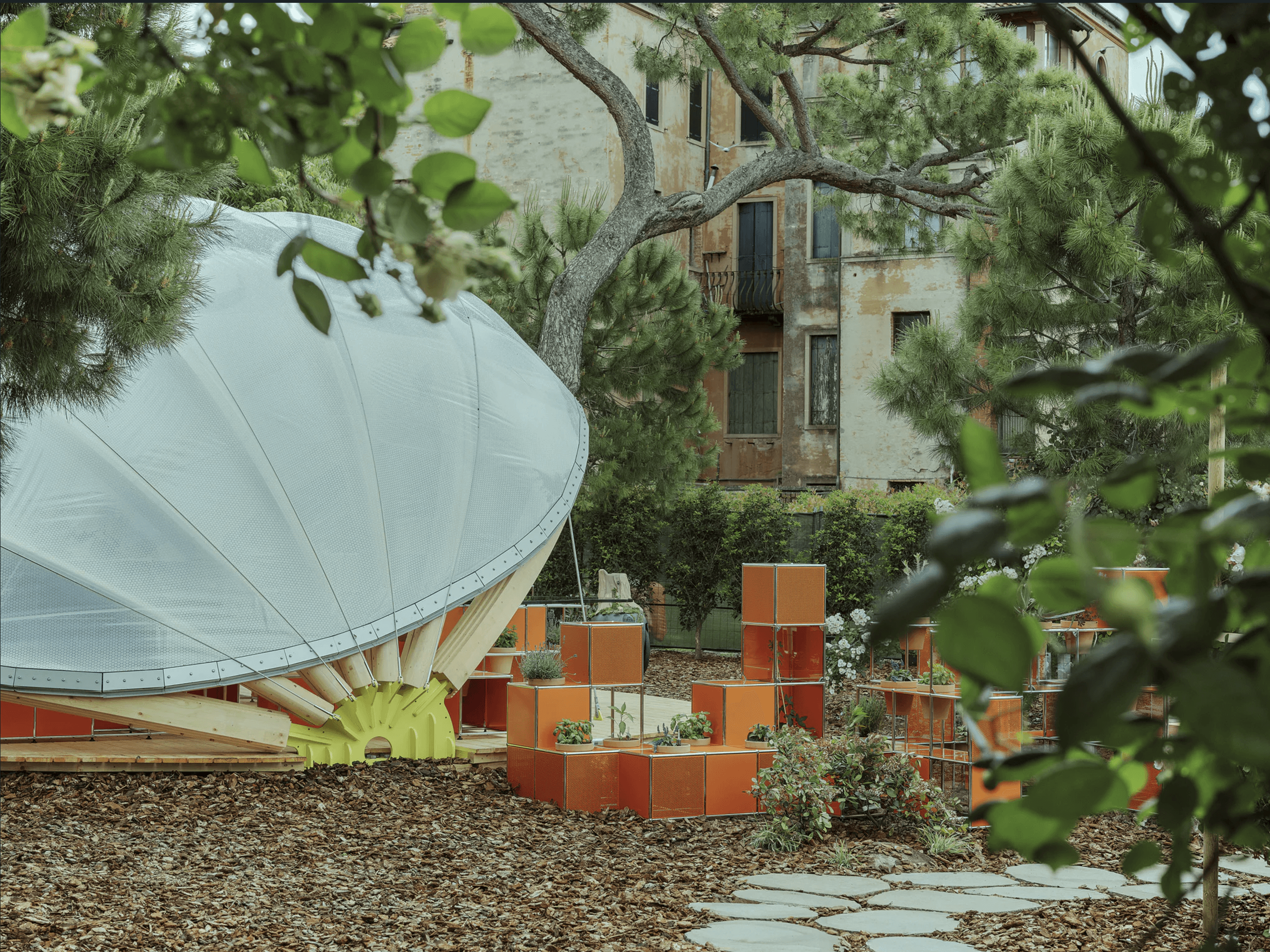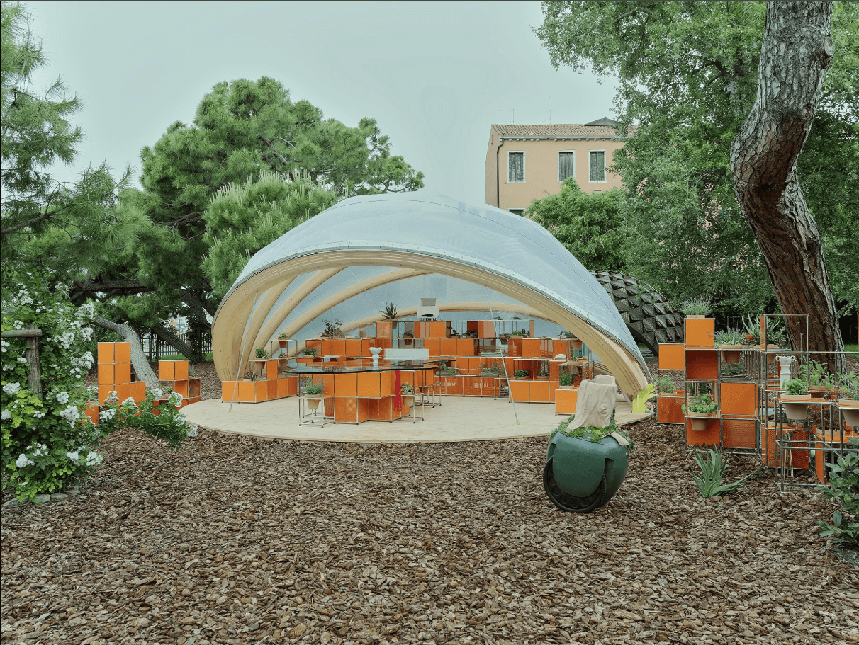 A small yet generous “pavilion”, born from the collective work of multidisciplinary students. The dome encourages the gentle movement of pollinating, while bee-friendly plantings surround the pavilion. The project resolved itself through the inflated ETFE roof. Chosen for its near weightlessness, it allows the structure to hover while cultivating a greenhouse for the plantings below. The double-layered ETFE tempers extremes, softening heat and deflecting rain, yet holds warmth and moisture in to create an interior of sustained humidity and growth. A subtle lift at the roof’s backing opens the pavilion to breathe, releasing excess heat.
